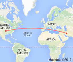 So, the idea that a regime seven thousand (7,000) miles a way from the (alleged) target of their (attempted) weaponization should not be: allowed to: attempt to: build (even: just) one such (similar) weapon seems absurd, particularly when you reflect up on the vast geographic distance that such a bomb would have to be: propelled (as delineated by the: line in red {on the following map}):
